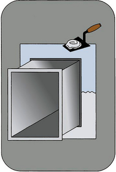 Installation of the fire protection cement. Panel over larger ducts on one side.
