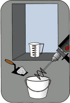 Premix dry cement. First put water, then cement into the mixing container. Mix for 4 minutes at 300-400 rpm.