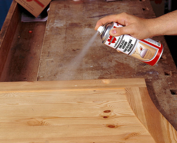 Agite el bote con fuerza y realice una prueba de pulverización. Pulverice de forma uniforme y ligera la madera natural con la imprimación de sellado para obtener una cubierta transparente, manteniendo el bote a 20-30 cm de la superficie; deje que se seque. A continuación, utilice un papel de lija fino para lijar la superficie seca y alisar las fibras de madera verticales. Elimine el polvo de la superficie de madera para quitar la suciedad y las partículas de pintura. Ahora aplique el revestimiento protector final de la capa de barniz transparente antiempañamiento.