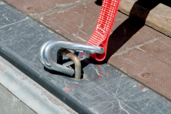 Safety catch on the double-claw hook prevents accidental unhooking from the lashing point.